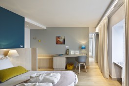 Une attention particulière sera portée pour la préservation du caractère clos et intime du jardin, espace de transition d’entrée et d’accueil. Le bâtiment existant est destiné à recevoir les espaces accessibles au public : accueil, salle de restaurant, salles de séminaires, cave à vins et chambres d’hôtes.