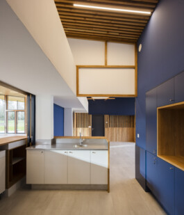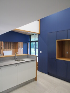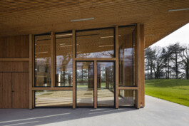 Le bâtiment s’intègre dans un cadre verdoyant, avec une conception architecturale qui repose sur une grande transparence afin de fusionner avec le paysage.